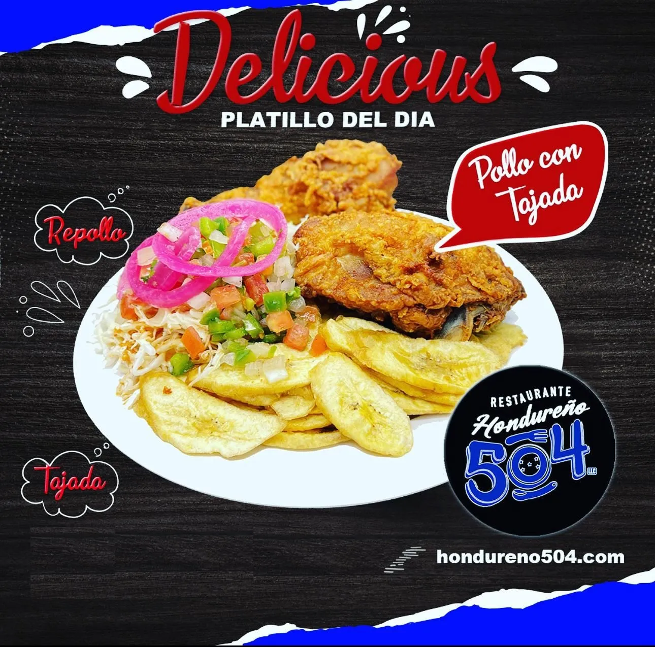 ¡Ven a Columbia Heights, MN y experimenta un pedacito de Honduras! Pollo Con Tajadas, también conocido como platos hondureños, son platos tipicos de honduras que ofrecen un sabor único Hondureño. ¡Habla de una explosión de sabores! Nuestras Pollo Con Tajadas están cargadas de pollo frito, verduras y salsas que te dan un poco de todo. Si está buscando algo verdaderamente auténtico y delicioso para probar, Pollo Con Tajadas lo es. No necesita viajar alrededor del mundo para experimentar la increÃble cocina hondureña: ¡está justo aquà en Columbia Heights!