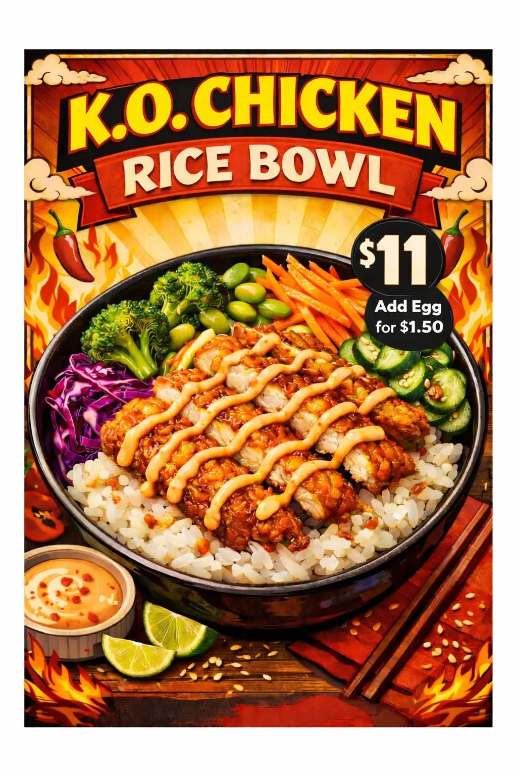 At KO Chicken, we bring bold flavors and crispy perfection to every bite. Our kitchen fuses passion with quality, serving up comfort food with a punch. Every dish is crafted fresh, delivering a crave-worthy experience you won’t forget. We’re more than just great chicken — we’re a community favorite for good reason. From quick bites to satisfying meals, there’s something here for everyone. Step in hungry, leave happy — KO Chicken’s got your flavor fix.
