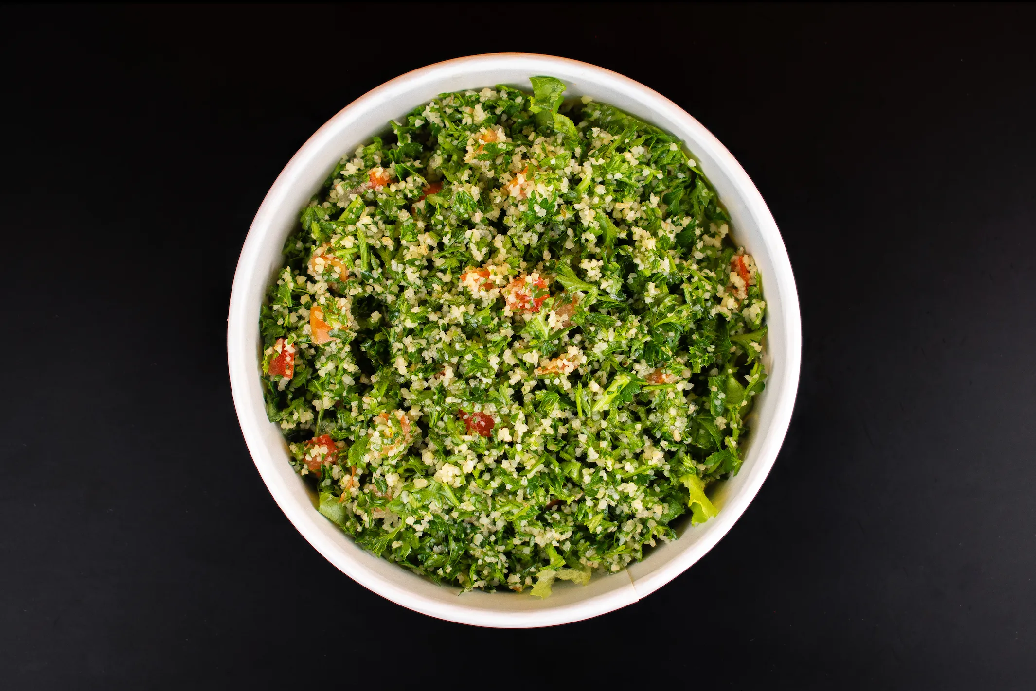 Finely chopped parsley, cracked wheat, tomatoes, and olive oil.