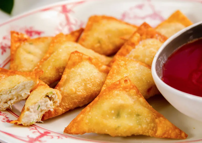 SERVED WITH SWEET & SOUR SAUCE TRIANGLE CRAB RANGOON!!