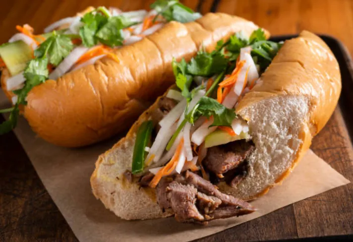 VIETNAMESE SANDWICHE Baguette bread, spread mayo, jalapenos, cucumberc, cilantro, and pickled daikons $ carrots.