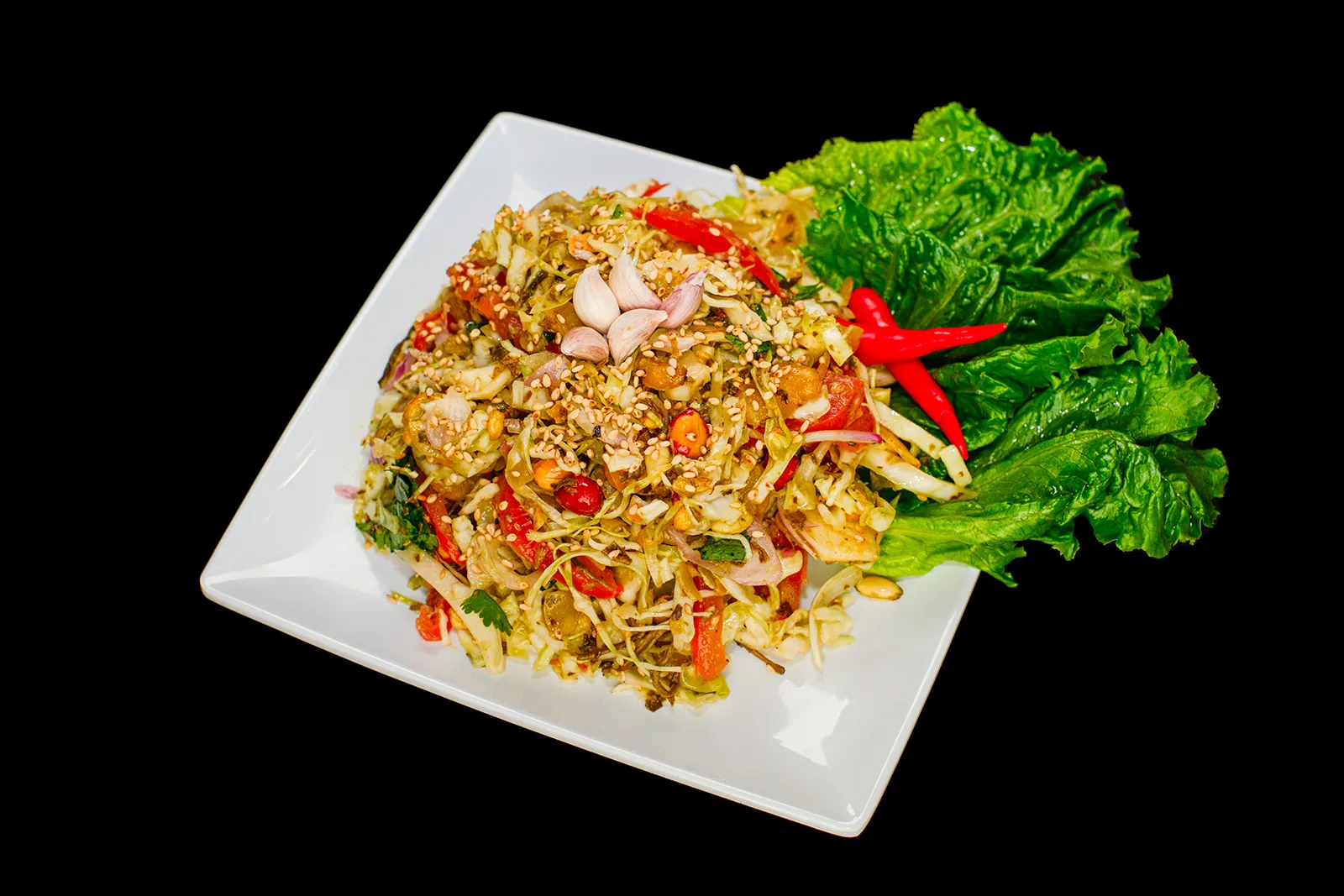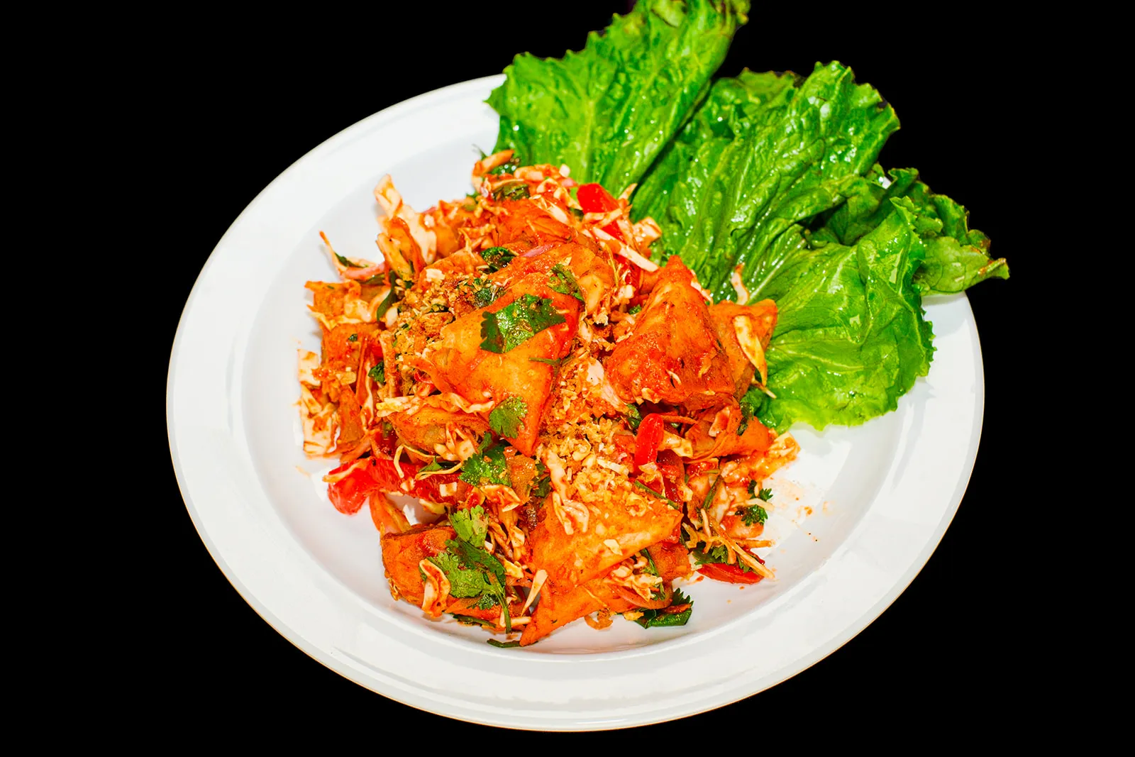 Veggie Samosa Tossed in Cabbage And Cucumber And Lime
