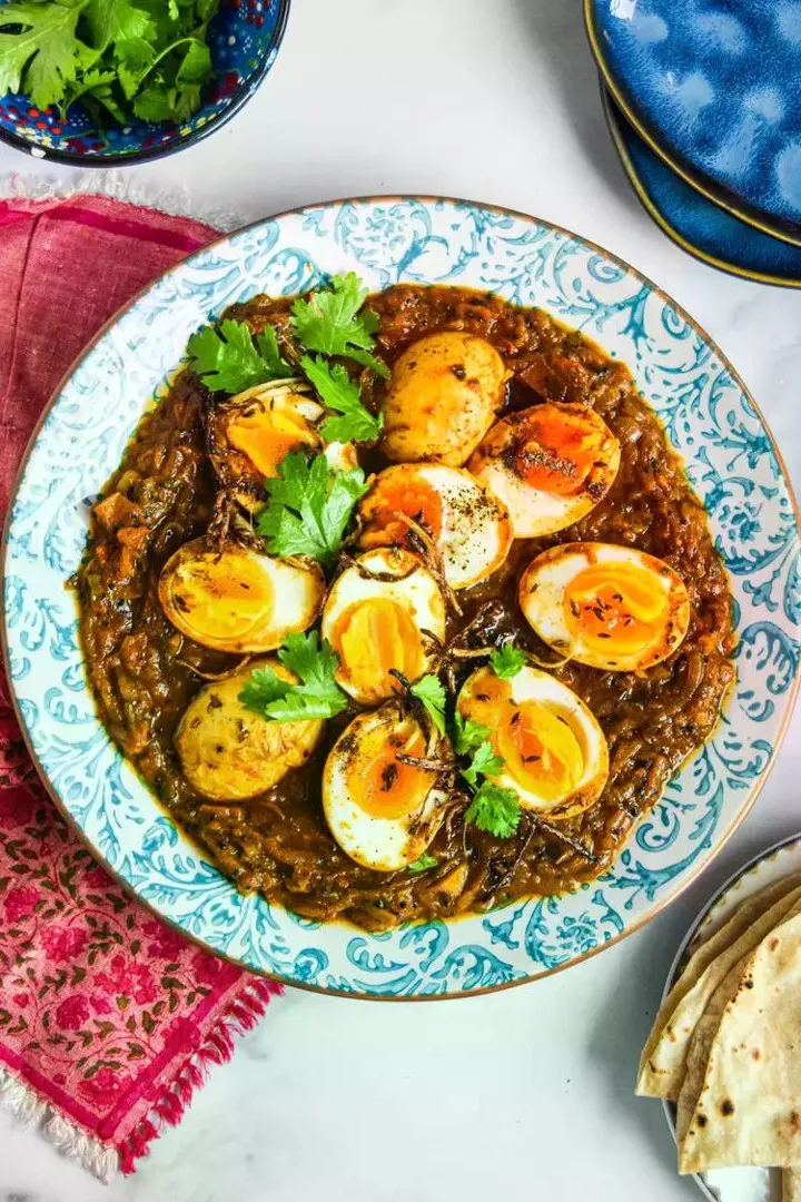 Each boiled egg is delicately simmered in a rich and aromatic masala gravy, infused with a blend of spices that awaken the senses. From the warmth of ginger and garlic to the earthiness of cumin and coriander, every spoonful is a symphony of flavors that dance on your palate.
