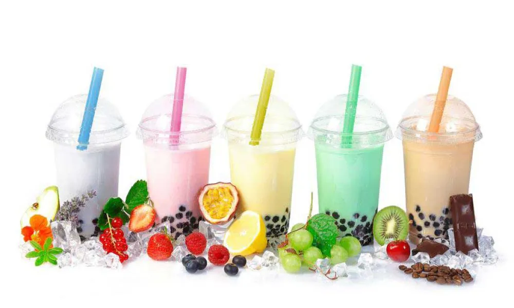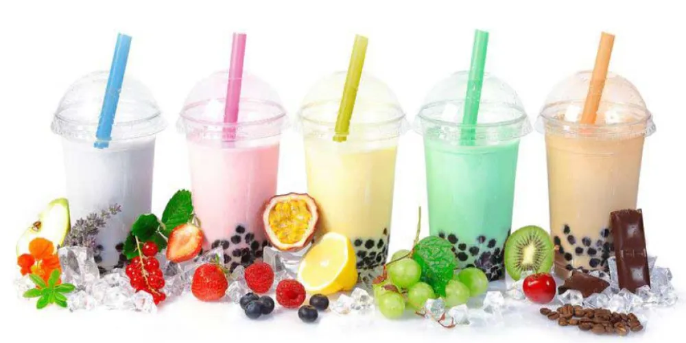 A delightful blend of assorted fruit and milk tea flavors, featuring a smooth and creamy texture. Cool drink on a hot summer day