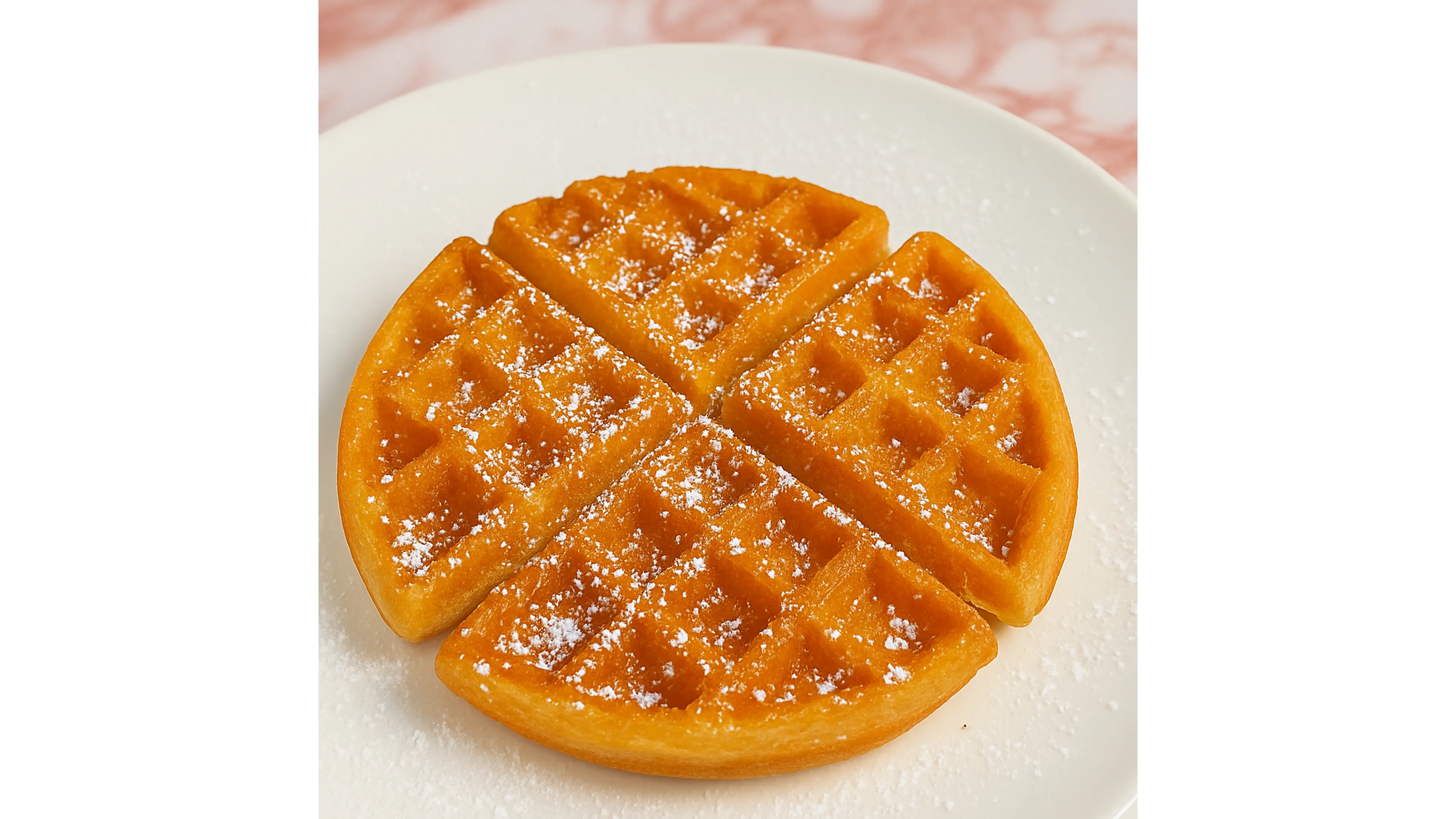 A classic waffle with a fluffy interior and crispy edges with lightly dust powder sugar, offering a buttery flavor in every bite.