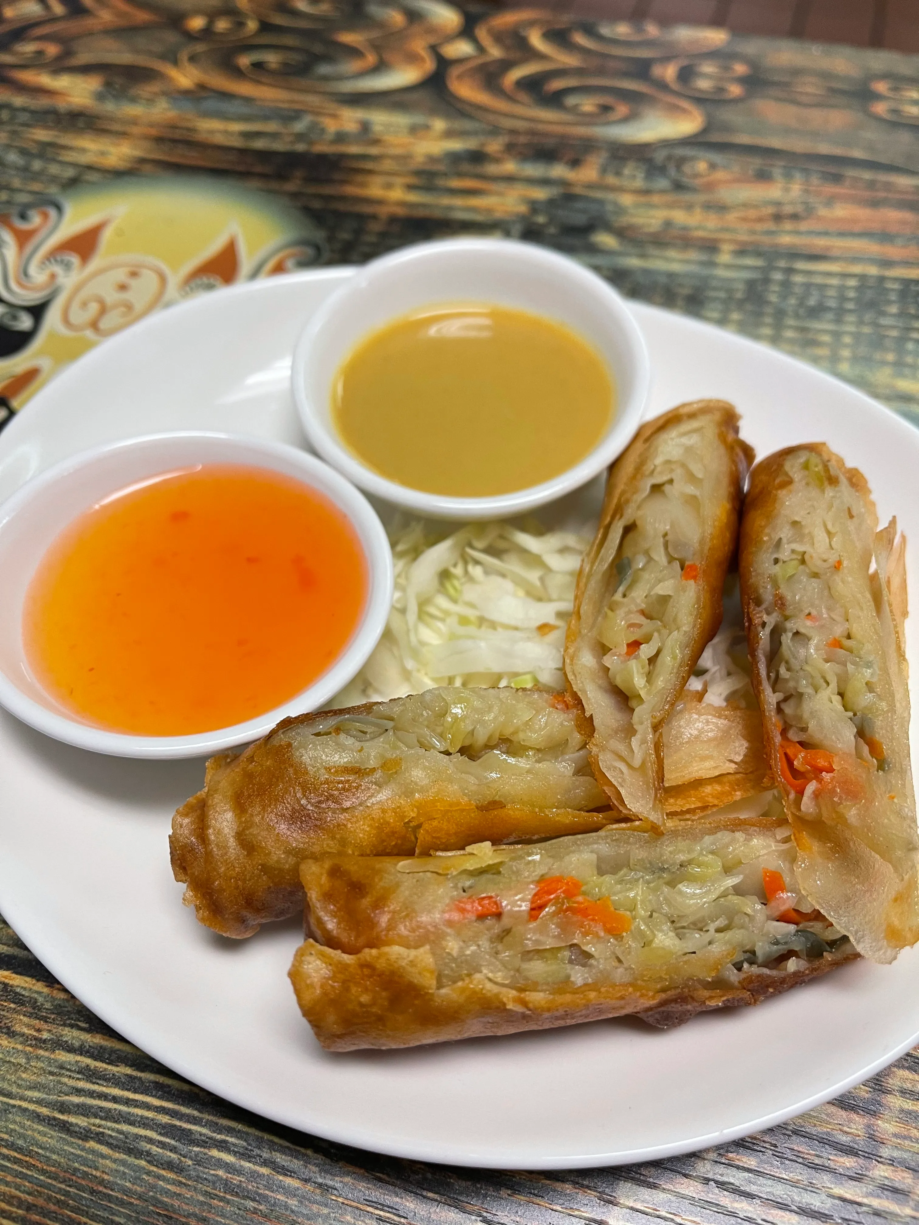 Tender dumplings filled with a flavorful blend of chicken pumpkin served with a rich, sweet and savory peanut sauce.
