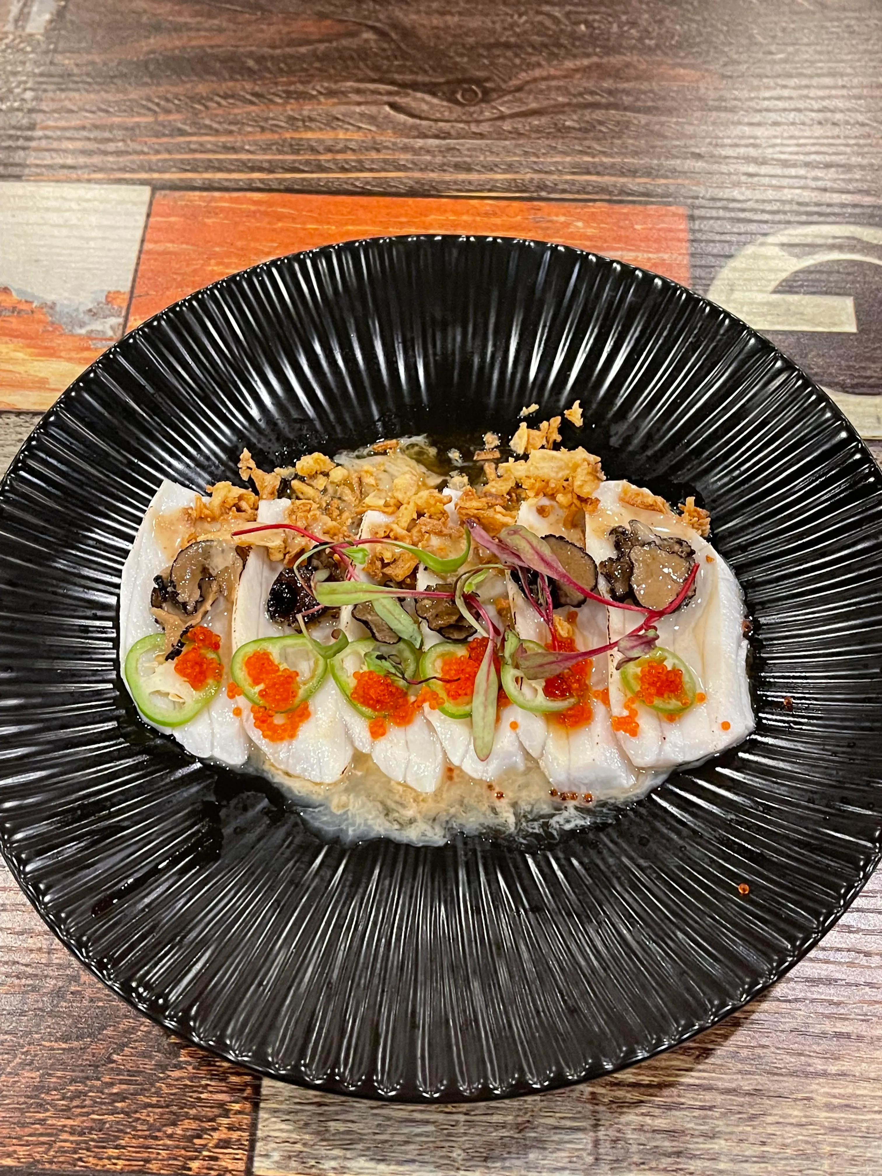 Delicate dumplings filled with real blue crab meat and a rich broth, served in creamy coconut milk infused with truffle oil and topped with black truffle.