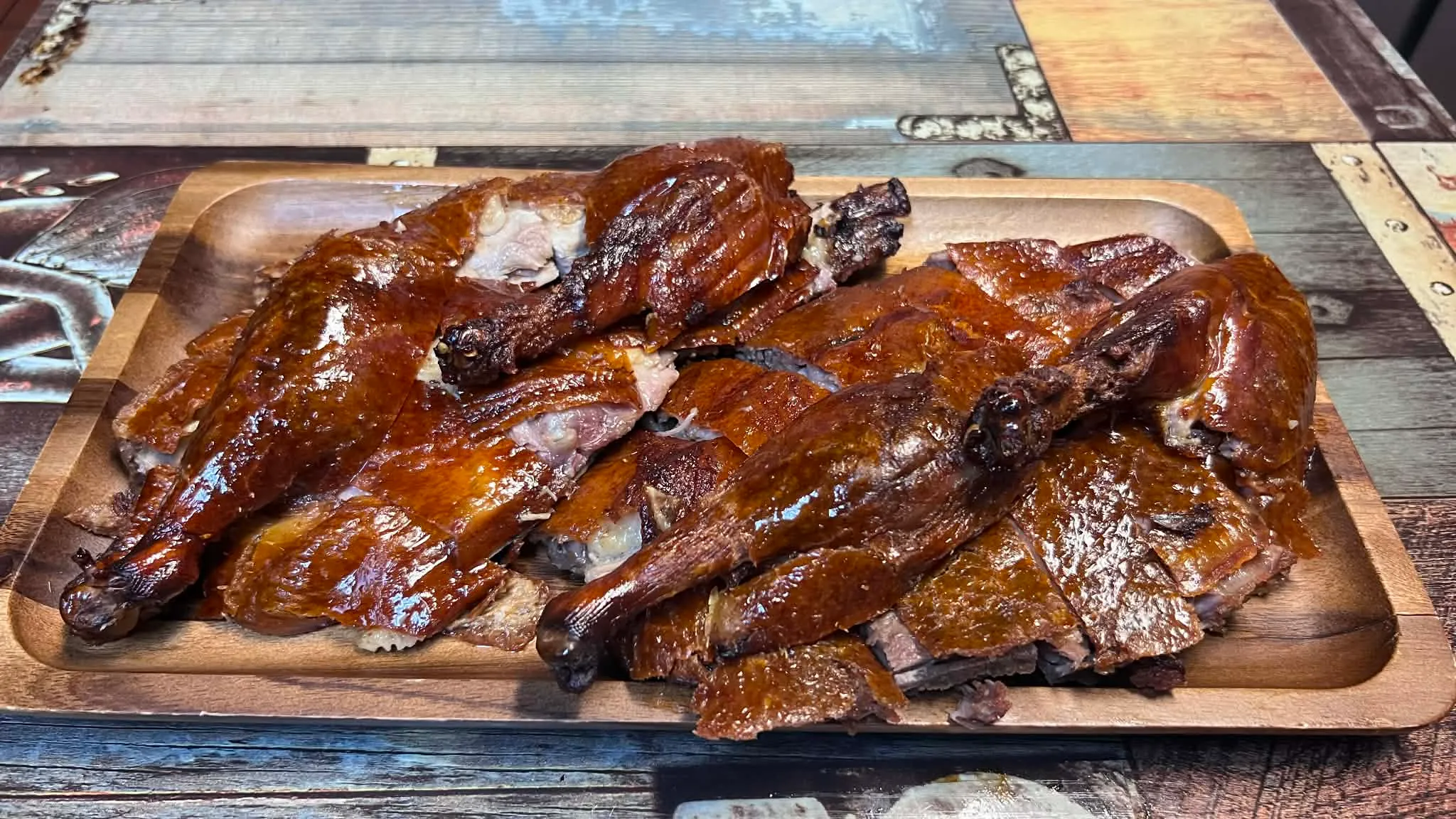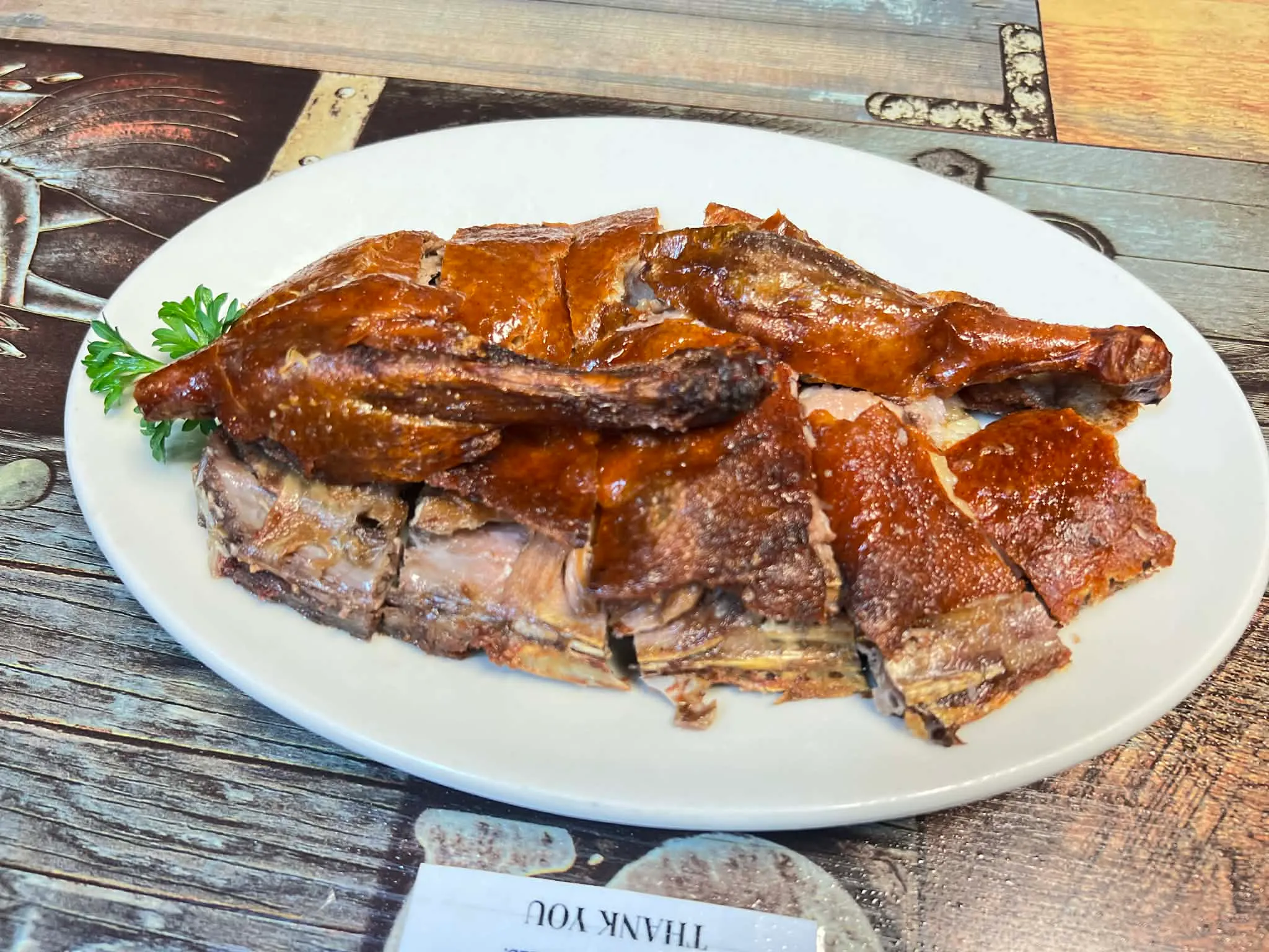 Tender bone-in roasted duck served with angel hair rice noodles and baby bok choy, all in a flavorful and spicy Szechuan broth.