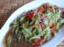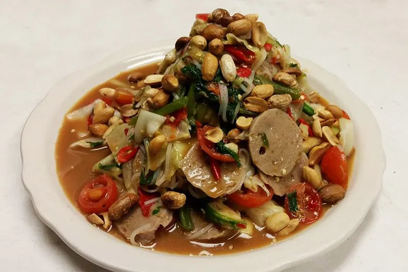Lao authentic style salad with the mixture of shredded papaya, meatball, cucumber,