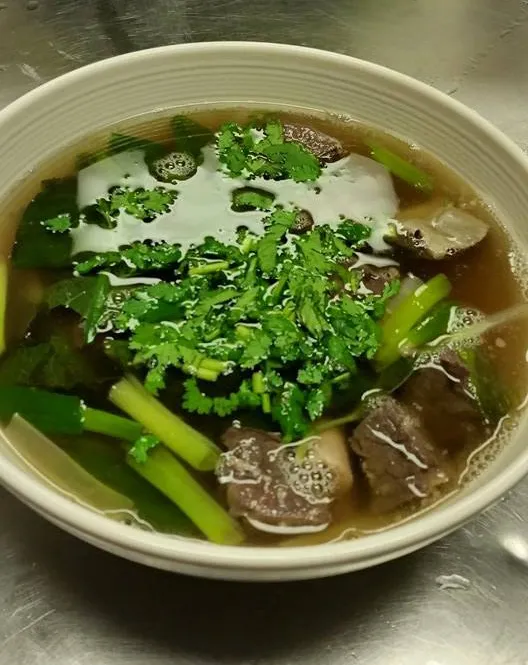 Lao authentic soup. Beef aorta, beef lung lube with green onion, and cilantro.