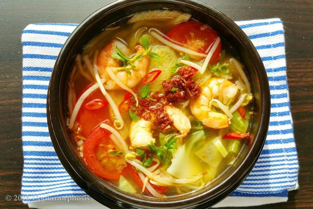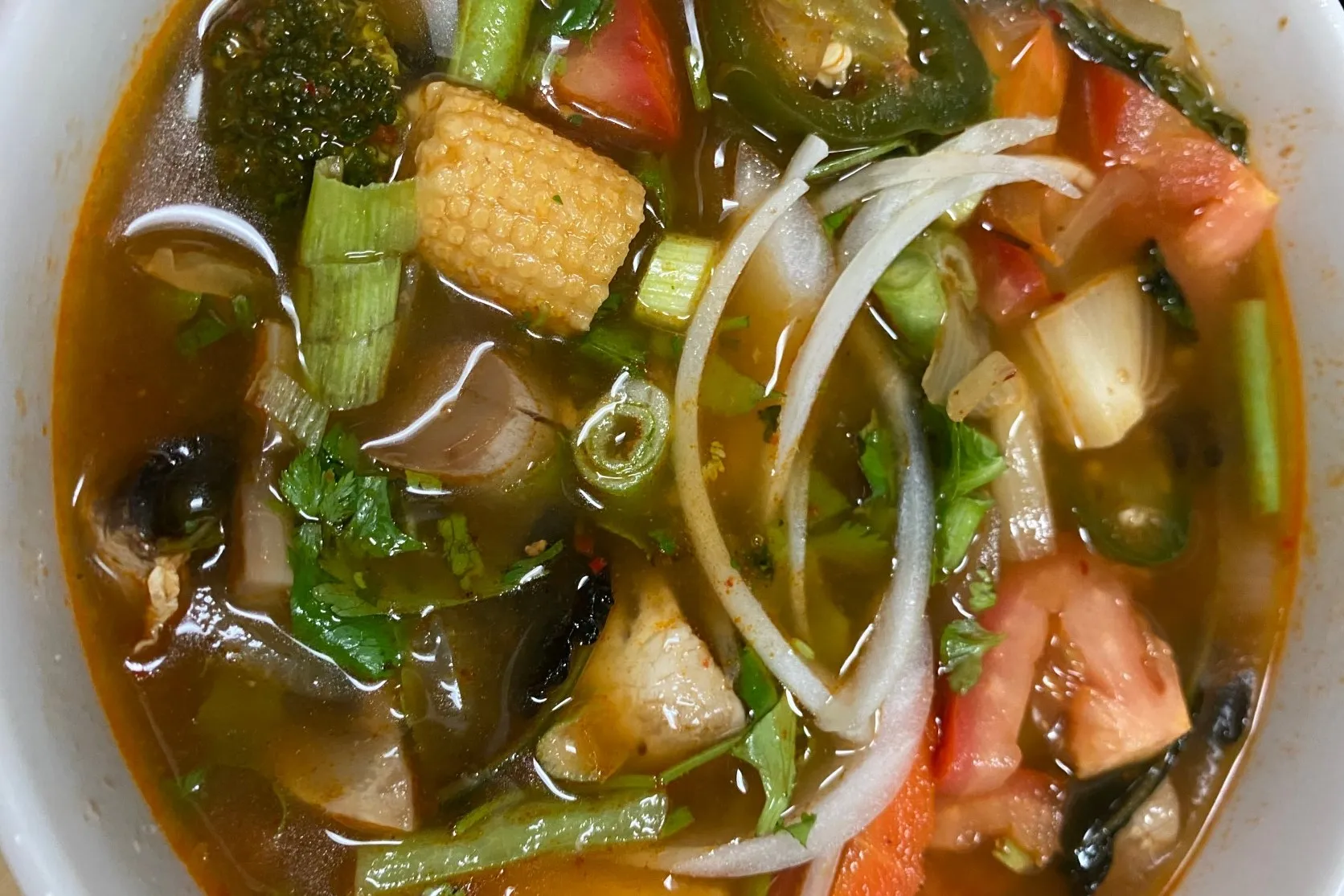 Thai hot and sour flavored with lemongrass, lime leaf, lime juice, chili paste, mushroom, tomato, mix seafood and topped with cilantro.