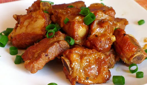 Deep fried pork ribs marinated with homemade specialty sauce, and topped with cilantro.