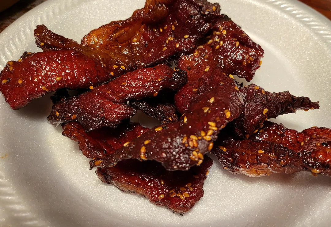 Lao authentic recipes with the tasty sweet & mild spice marinations style beef jerky.