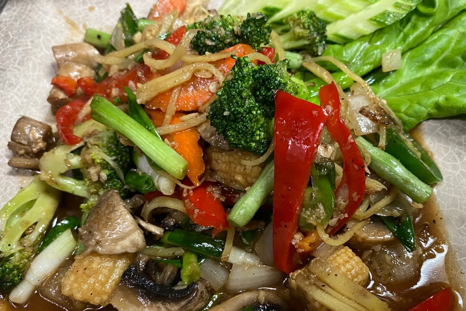 Your choice of Tofu or Mixed Veggies stir-fried with ginger, garlic, onions, and herbs.