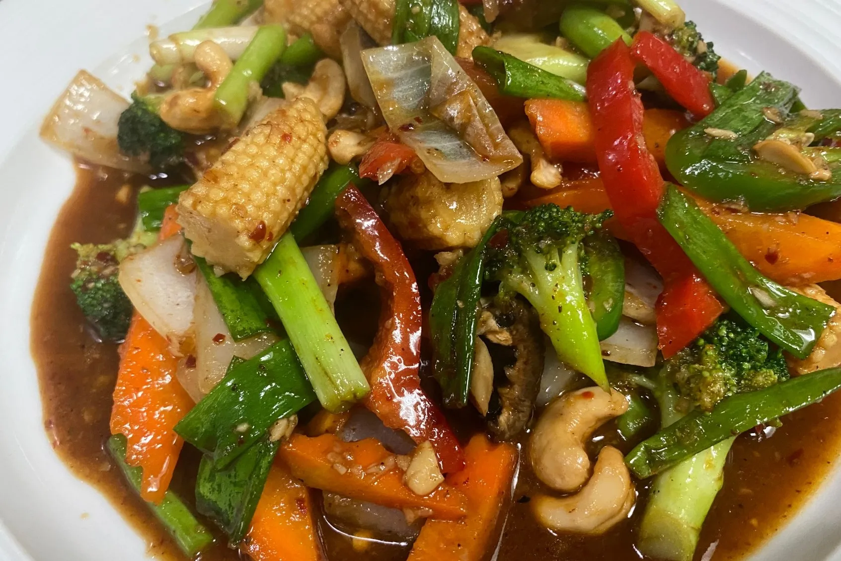 Your choice of Tofu or Mixed Veggies stir-fried with cashew nuts, garlic, onions, and herbs.