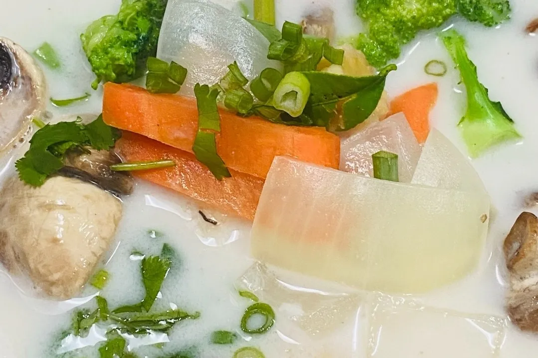 Flavorful coconut soup with mushrooms and your choice of Tofu or Vegetables.