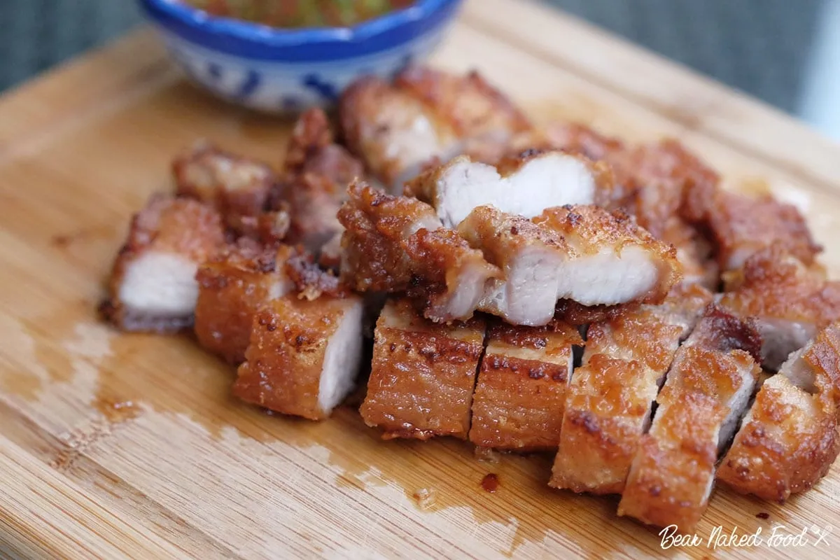 Deep-fried lightly salted crispy pork belly. Served with jell-som (spicy sauce)